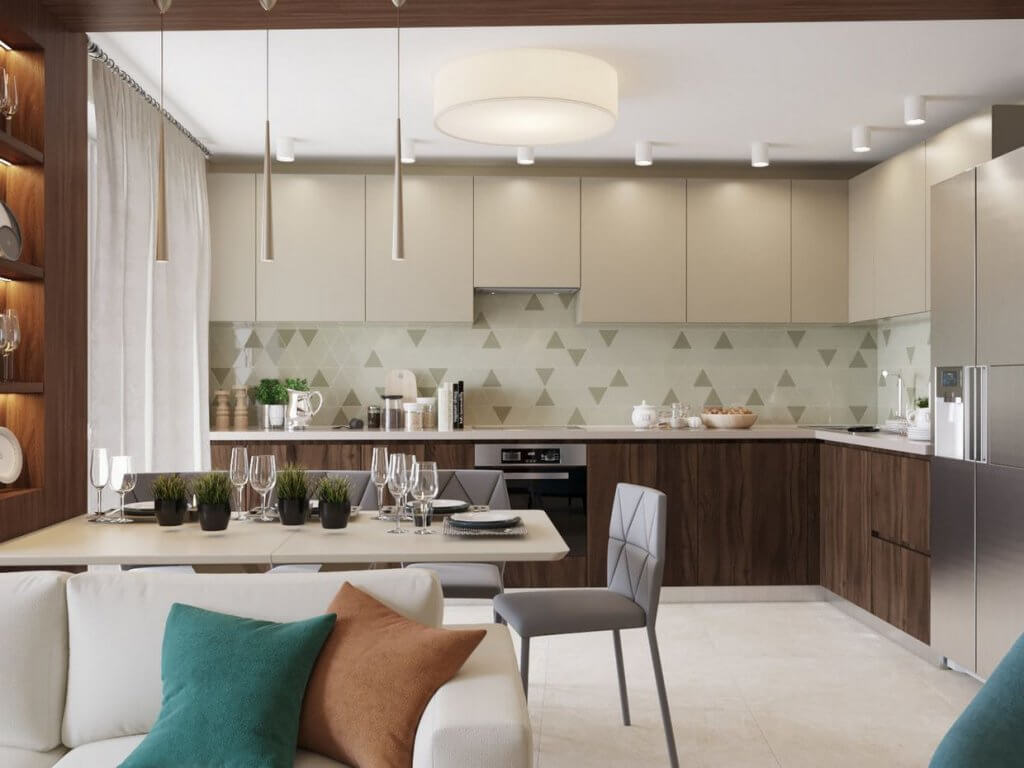 Với những căn hộ thì việc thiết kế càng nhỏ gọn càng tốt nhưng không vì thế mà gian phòng bếp trở nên thiếu thốn. Mà thay vào đó sẽ sắp xếp thuận tiện và đầy đủ tiện nghi hơn giúp gia chủ dễ dàng trong việc nấu ăn.