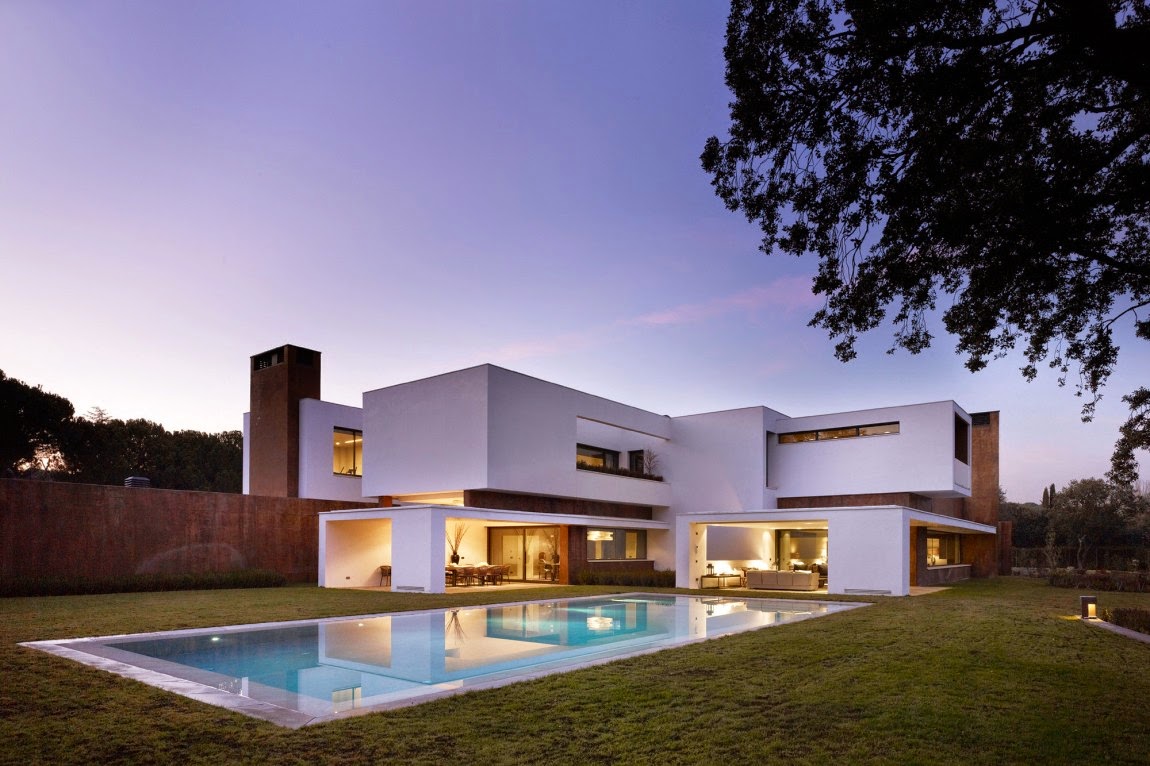 Hòa cùng với xu hướng thiết kế nhà biệt thự thân thiện với thiên nhiên các kiến trúc sư đã đưa vào khuôn viên khu vườn nhà nhiều mảng cây xanh, hoa lá, hồ bơi. Đó là sự kết nối không gian ngôi nhà với bên ngoài.